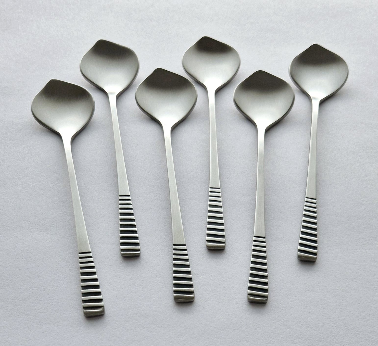 Latimeria utensils are made from stainless steel 18/10 (AISI 304), the industry standard for serving pieces and cutlery. They are dishwasher safe, but it is recommended to rinse them before placing them in the dishwasher. After the wash cycle, drying the utensils with a cloth is advised.